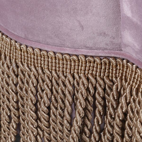 This luxurious Dita Velvet Pouf is perfect for adding a touch of glamour to your space. Upholstered in delicate coloured orchid velvet and with an ornate quatrefoil shape and finished with a luxurious old gold bullion fringe, this pouf will add a touch of luxe to any room.