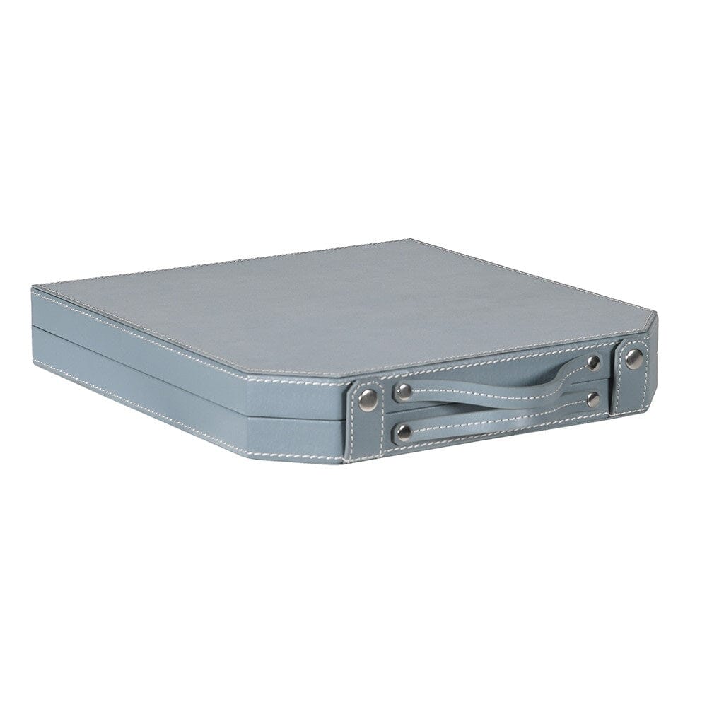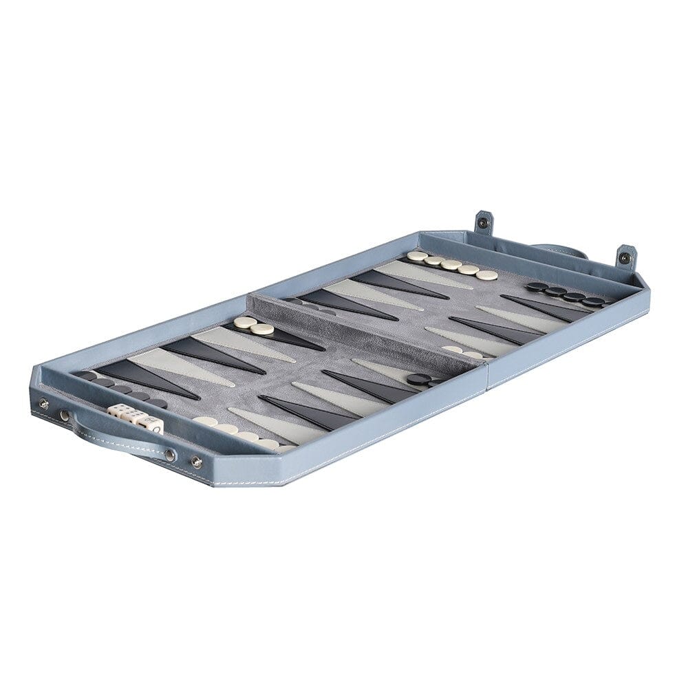 Experience the timeless elegance of backgammon with the Pimlico Set. Encased in luxurious sky blue leather with contrasting white stitching, this portable backgammon set combines classic gameplay with contemporary style.